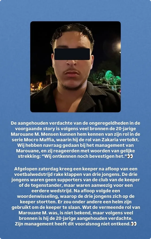 De 20-jarige acteur is betrokken geweest bij een vechtpartij in het amateurvoetbal. Marouane, vooral bekend door zijn rol als Zakaria in Mocro Maffia en die ook te zien is in Ferry 2, zou met twee andere mannen een keeper van de Amsterdamse amateurvoetbalclub SDZ hebben aangevallen. "De doelman was helemaal dizzy en kon niet meer lopen", aldus een ooggetuige tegen De Telegraaf.
