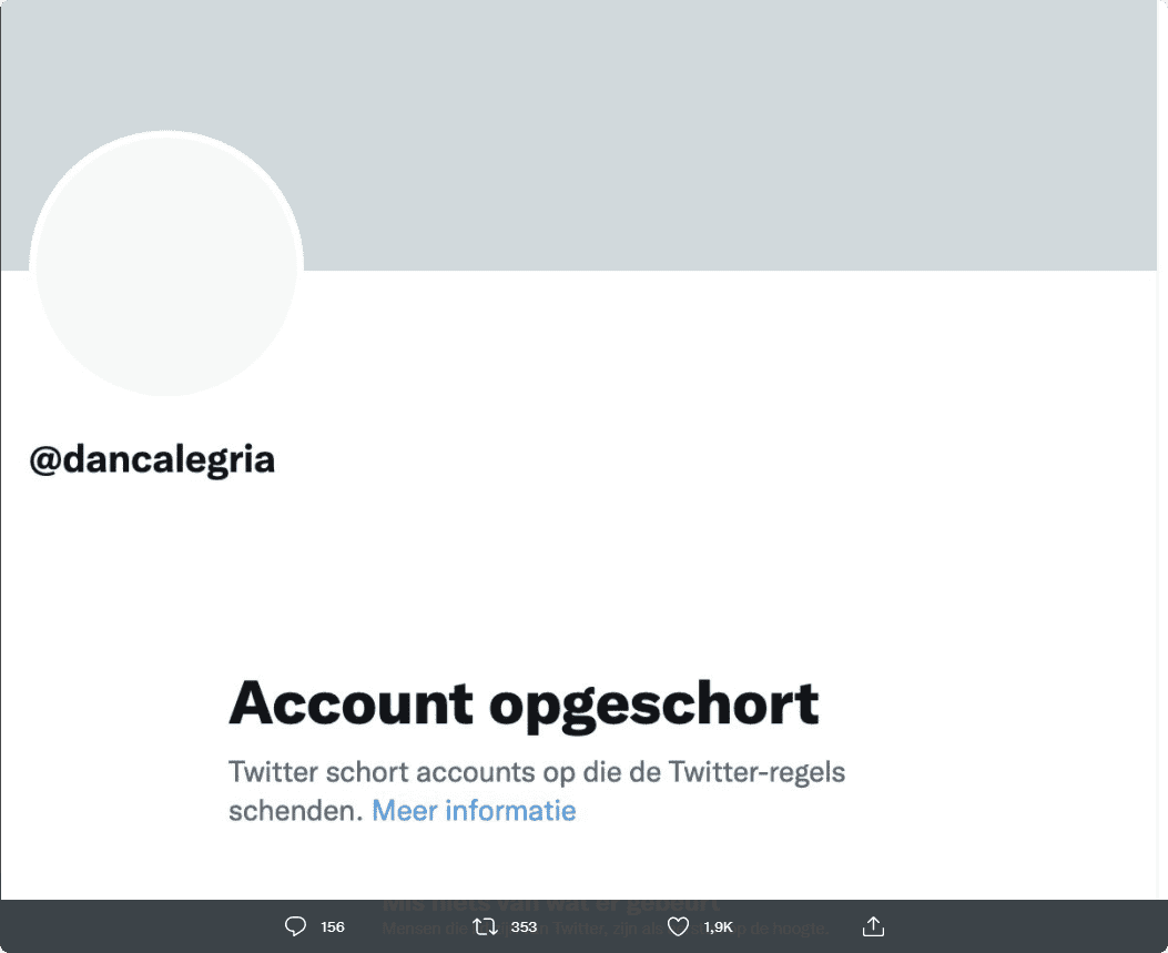 De opschorting gebeurde omdat hij op het sociale platform adresgegevens van Sigrid Kaag had gedeeld. Of dat ook echt de reden is, is nog niet duidelijk.