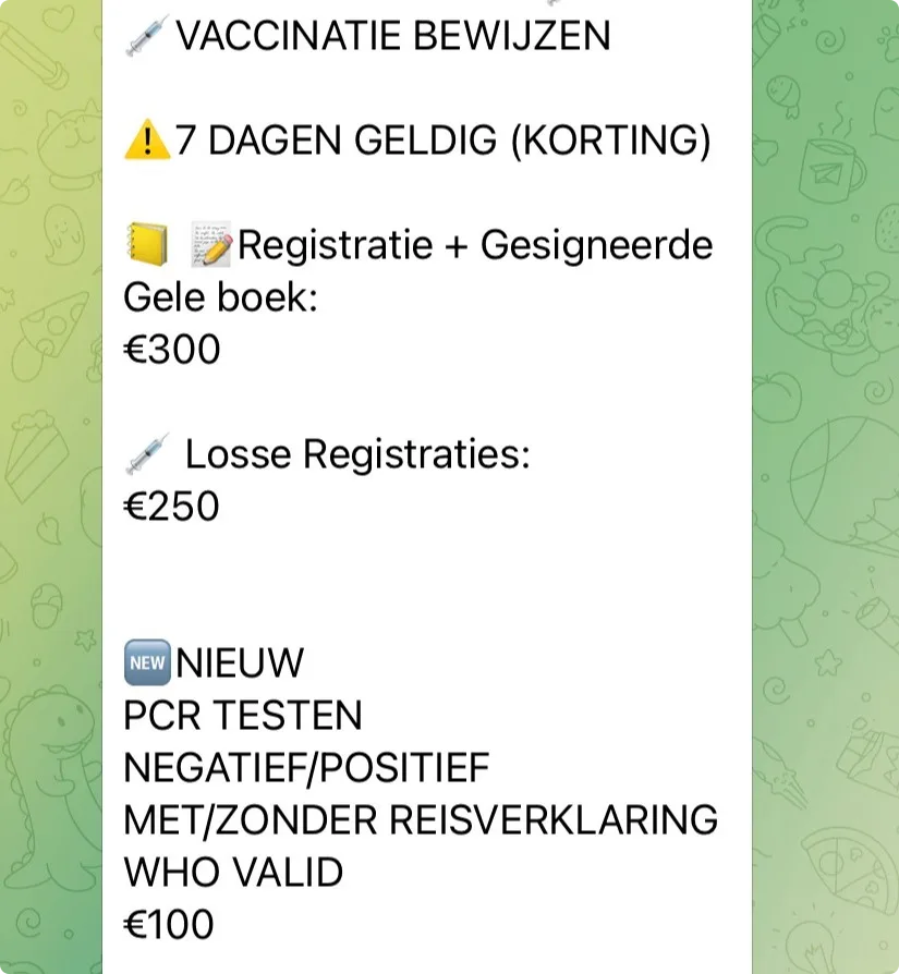 Eerder dit jaar bleek dat op Telegram ook valse testcertificaten werden aangeboden om onder meer naar het buitenland te reizen.