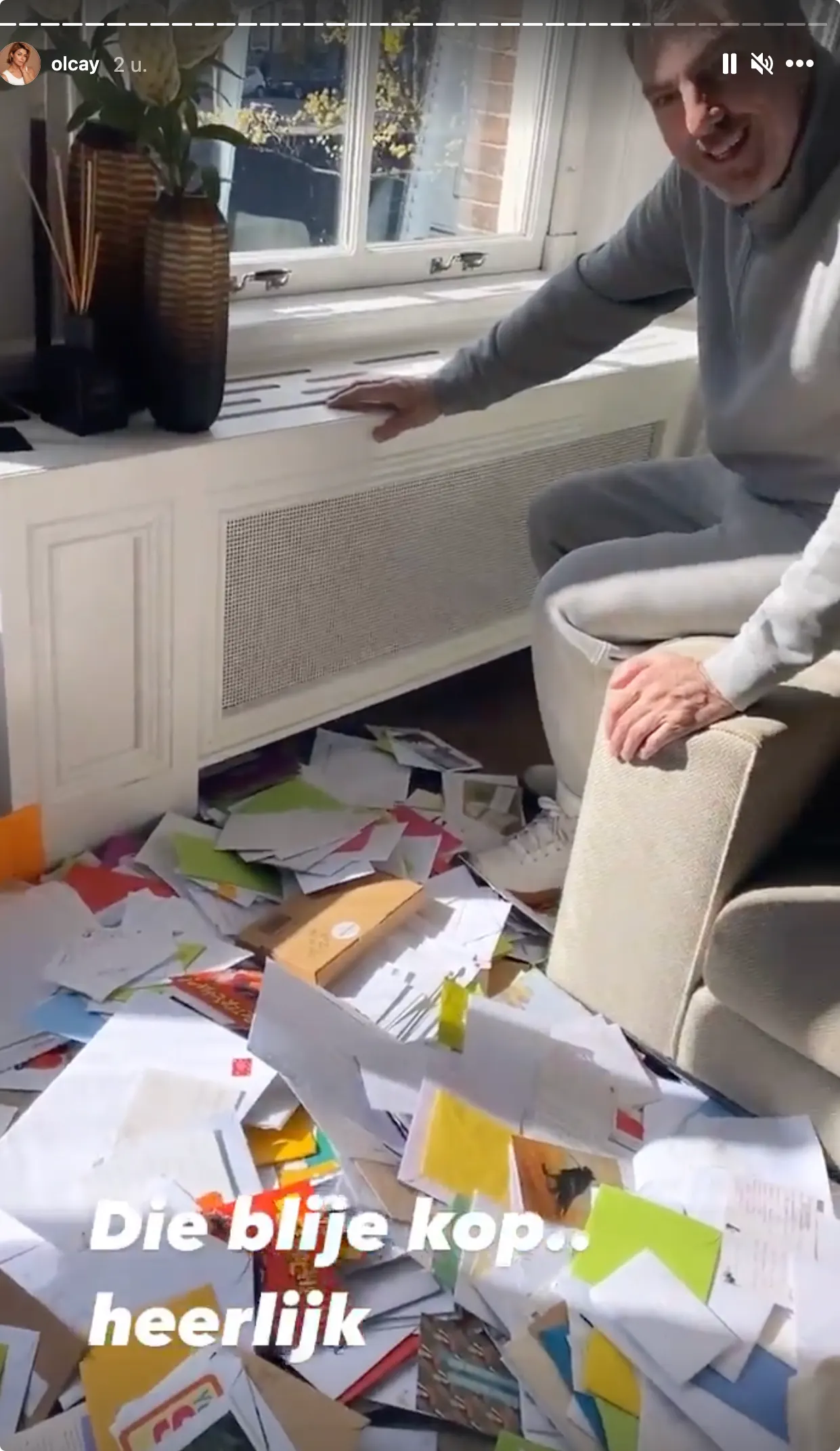 Ruud de Wild, die werd geopereerd aan darmkanker, heeft heel veel beterschapskaarten gekregen. Zijn vriendin Olcay Gulsen deelt woensdag in haar Instagram Stories een video van Ruud tussen honderden enveloppen.