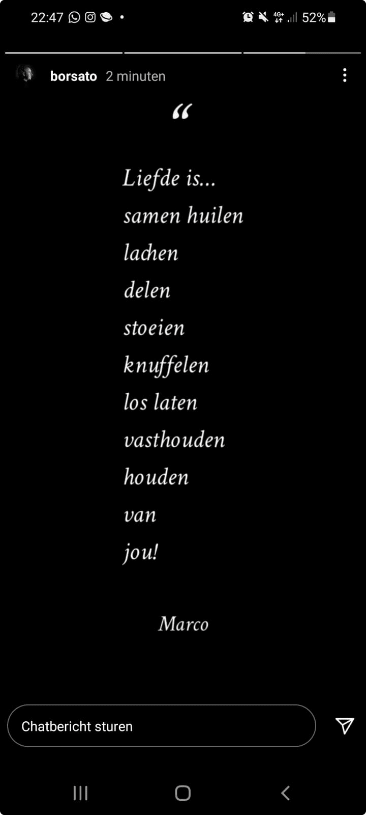 Marco Borsato deelt een prachtige ode aan zijn grote liefde Leontine. Op zijn Instagram Stories schrijft hij wat hij voelt...
