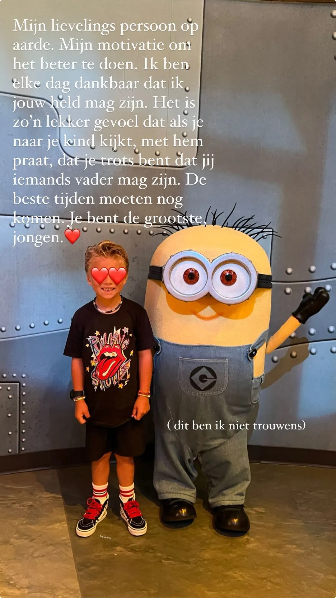 "Mijn motivatie om het beter te doen. Ik ben dankbaar dat ik jouw held mag zijn. Het is zo'n lekker gevoel dat als je naar je kind kijkt, met hem praat, dat je trots bent dat jij iemands vader mag zijn", vertelt de zanger openhartig. "De beste tijden moeten nog komen. Je bent de grootste jongen."