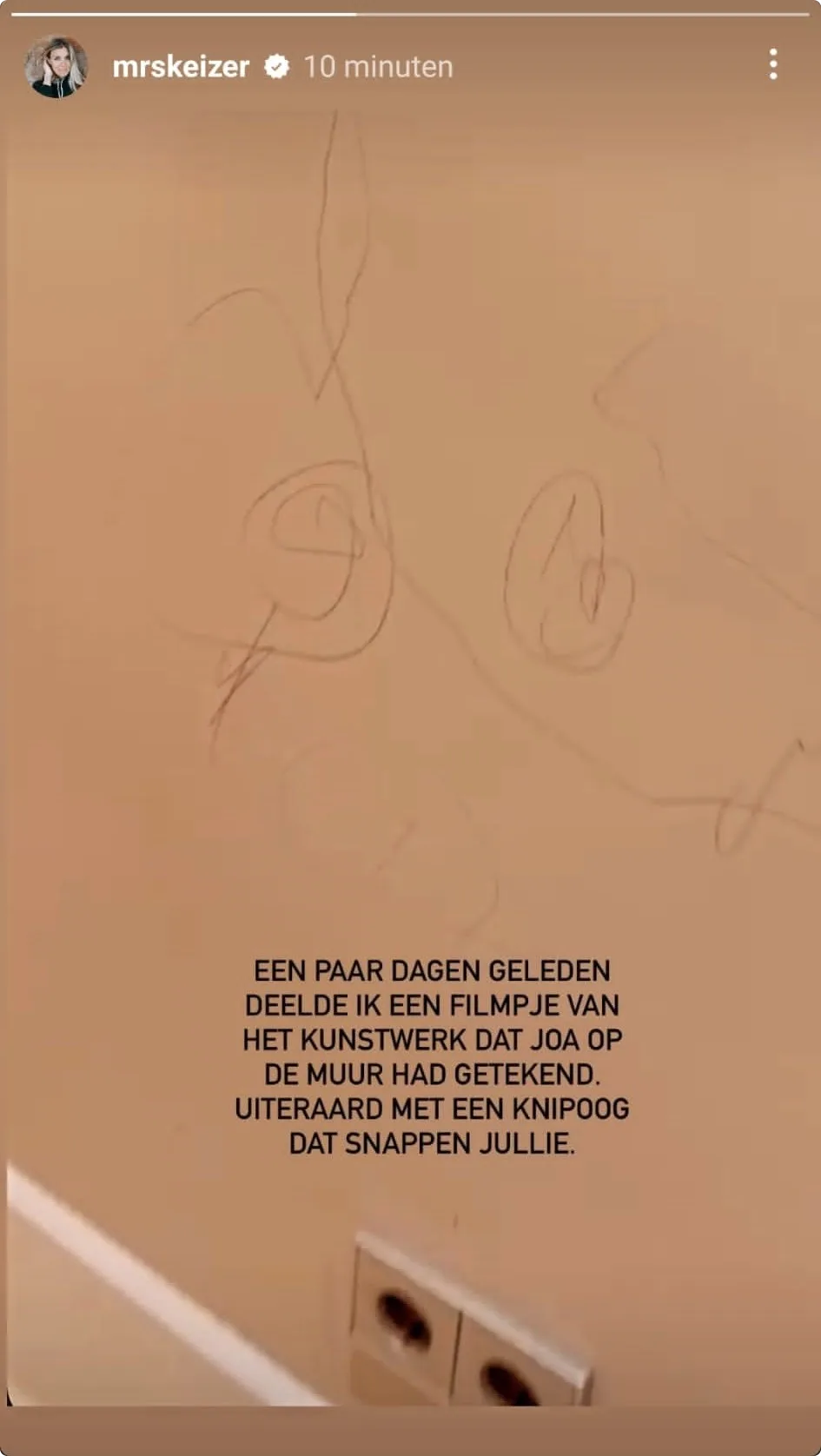 "Een paar dagen geleden deelde ik een filmpje van het kunstwerk dat Joa op de muur had getekend", zo schrijft Annemarie in haar Instagram Stories. "Uiteraard met een knipoog, dat snappen jullie."