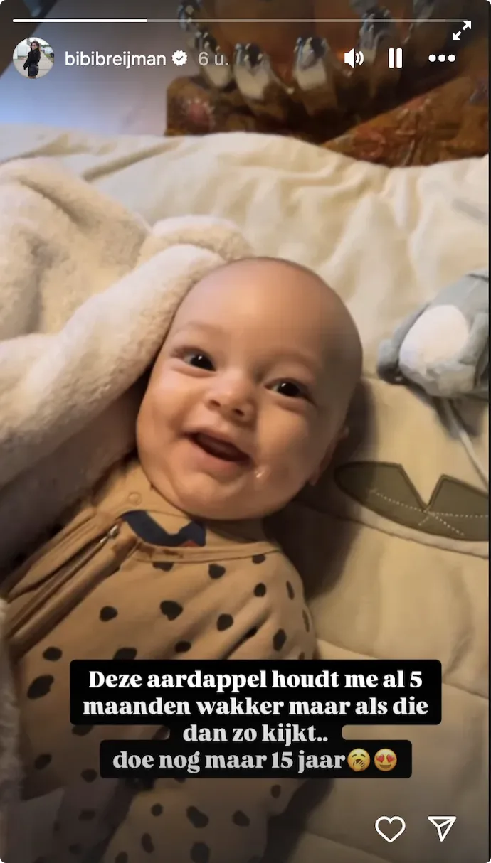 Bibi Breijman geeft haar volgers een bijzondere inkijk in haar hectische, maar liefdevolle gezinsleven. In haar Instagram Stories deelt ze een moment met haar jongste zoon Tjipto.
