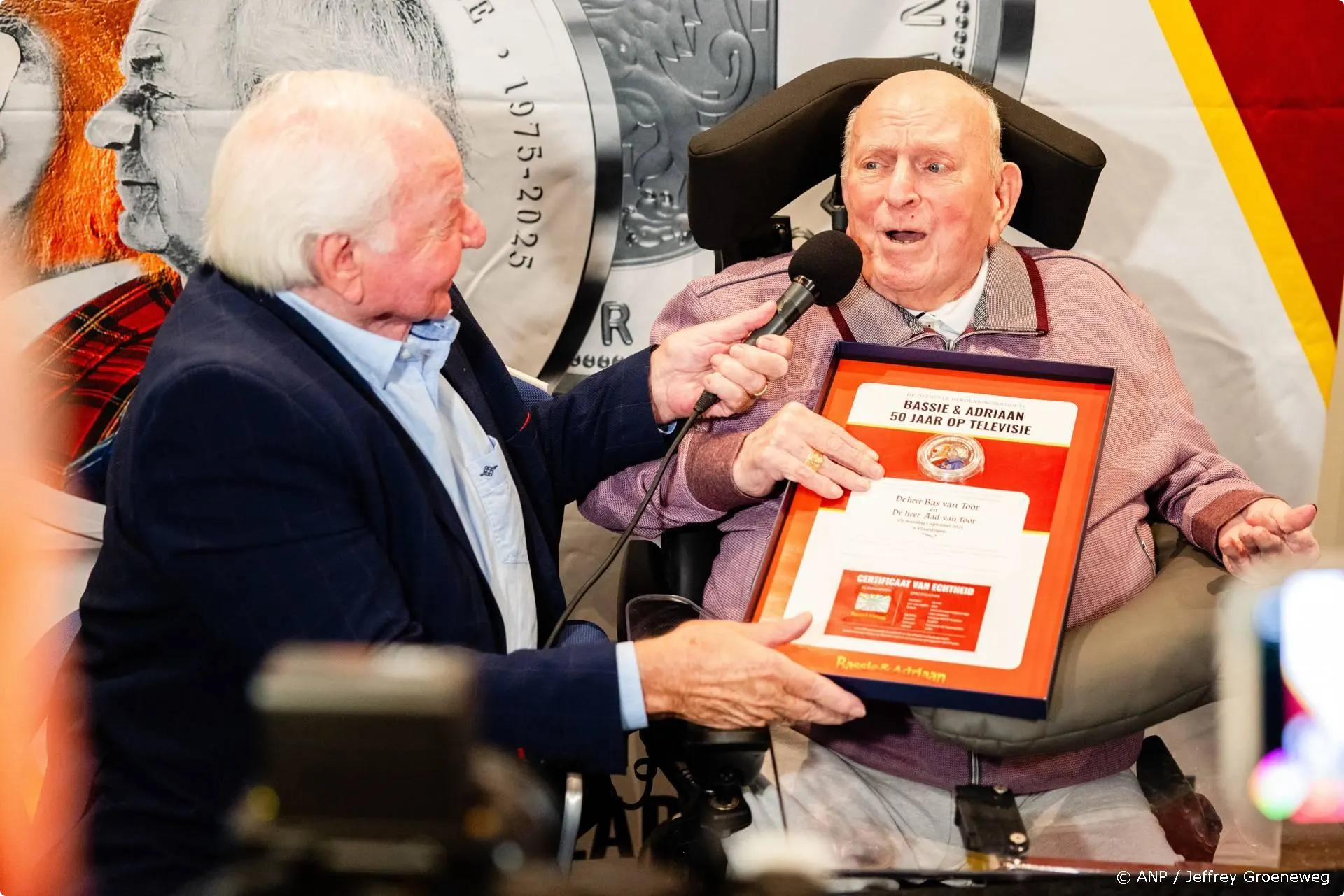 Bas van Toor, bekend van het iconische duo Bassie & Adriaan viert deze woensdag zijn 90e verjaardag. Voor de gelegenheid ontvangt Bas een nieuwe munt met een afbeelding van hem en Vlugge Japie, een personage uit de Bassie en Adriaan-series.
