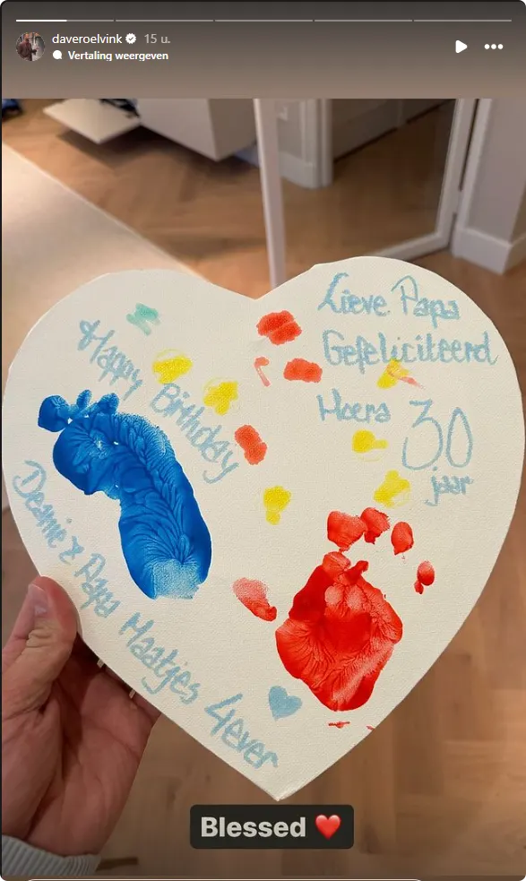 Dave laat op zijn Instagram weten gezegend te zijn met dit mooie cadeau. Tekst gaat verder onder Instagram-story...