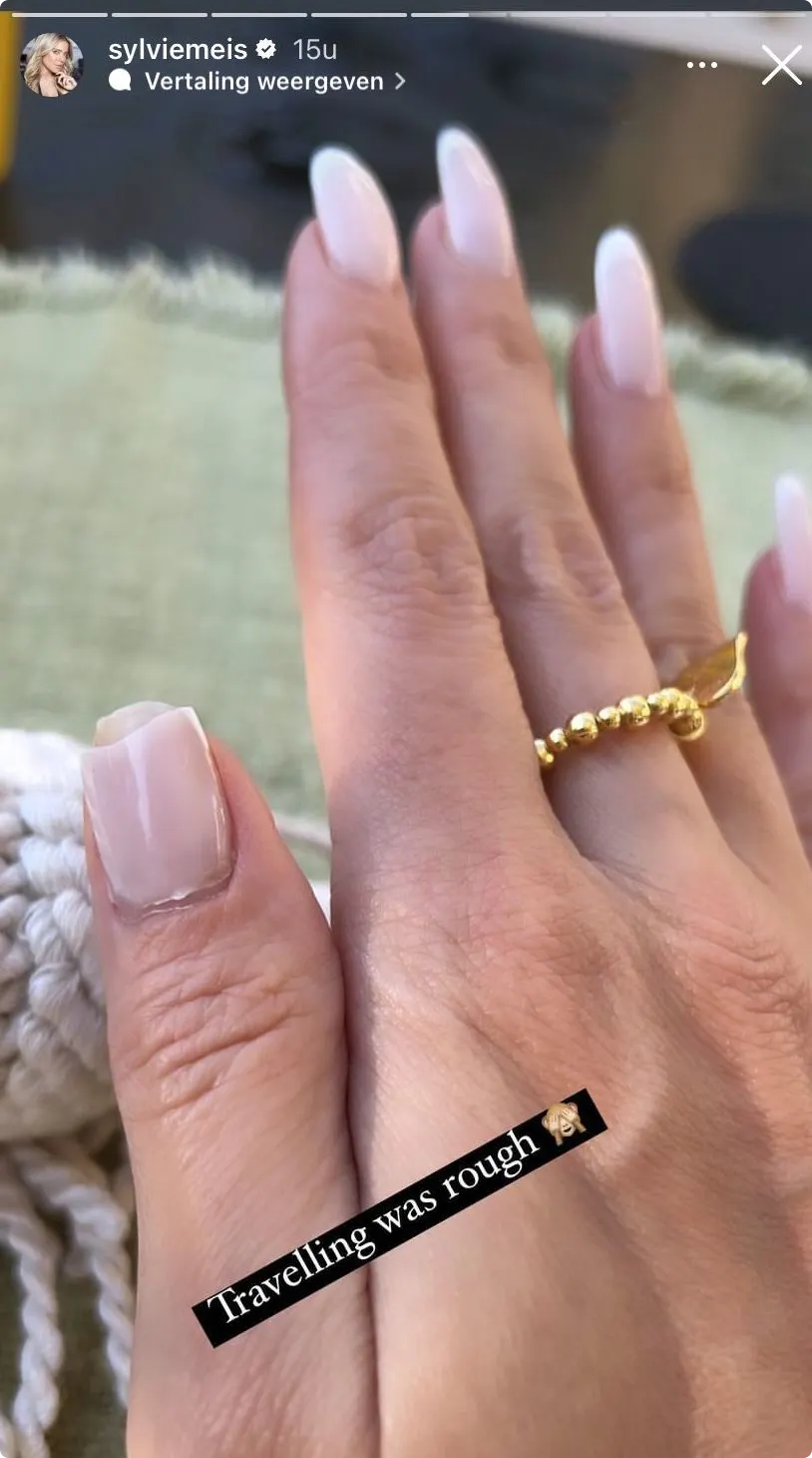 De blondine deelt een foto van een afgebroken nagel op instagram. Gelukkig wordt dit ongemak snel weer in orde gemaakt door een nagelstyliste aldaar.