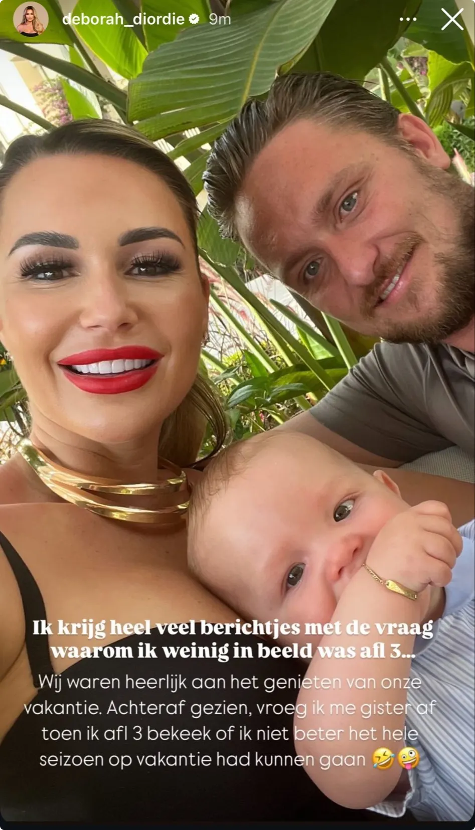 Deborah reageert met een knipoog: "Wij waren heerlijk aan het genieten van onze vakantie. Achteraf dacht ik gisteren, toen ik aflevering 3 terugkeek, dat ik misschien wel beter het hele seizoen op vakantie had kunnen gaan."