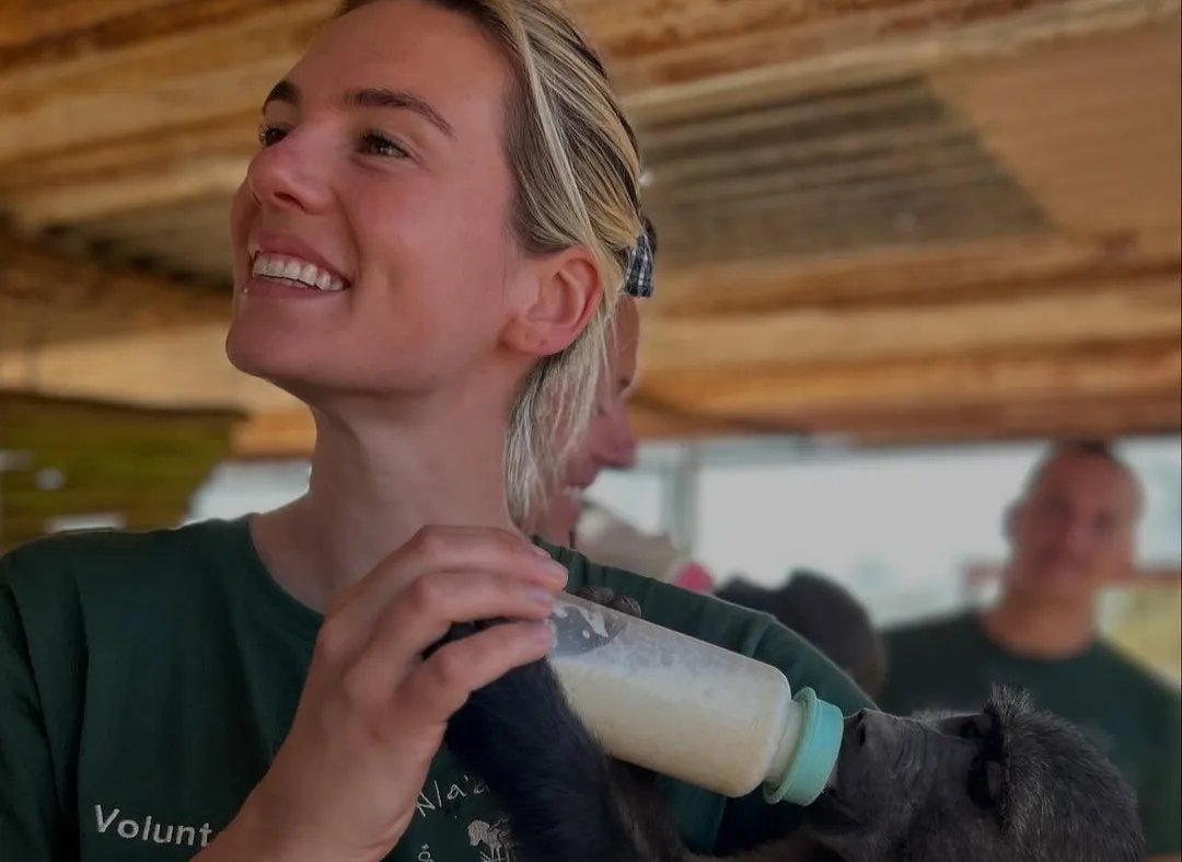 "We konden helpen bij onder anderen leeuwen voeren, baby-aapjes verzorgen (mijn droom!), mee met de rhino rangers op patrouille, hokken schoonmaken en ingewanden voeren aan de wilde honden. Al was dat voor mij niet echt een hoogtepuntje als vegetariër.."