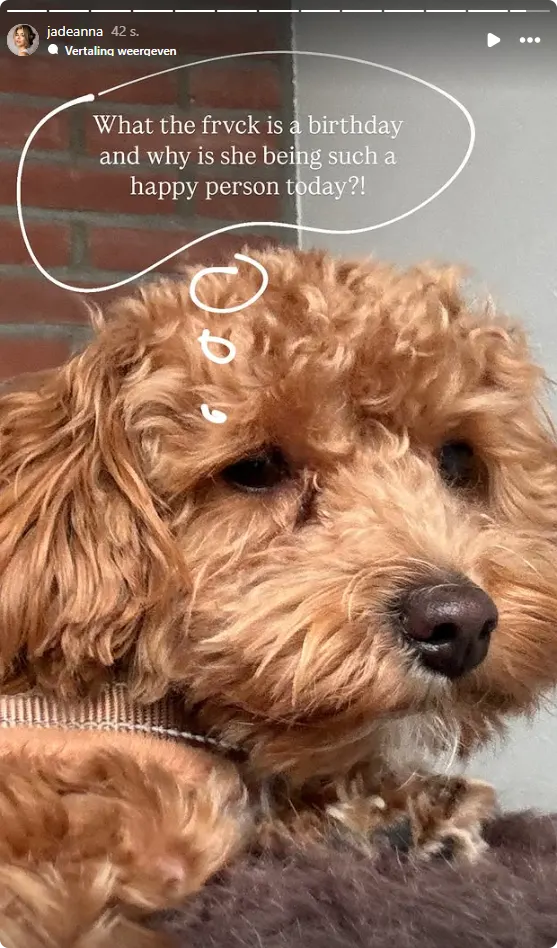 Hoera! Tijd voor een hondentaartje: Jade Anna's hondje Navy is woensdag één jaar geworden. Ter gelegenheid van zijn eerste verjaardag deelt Jade wat kiekjes op Instagram.