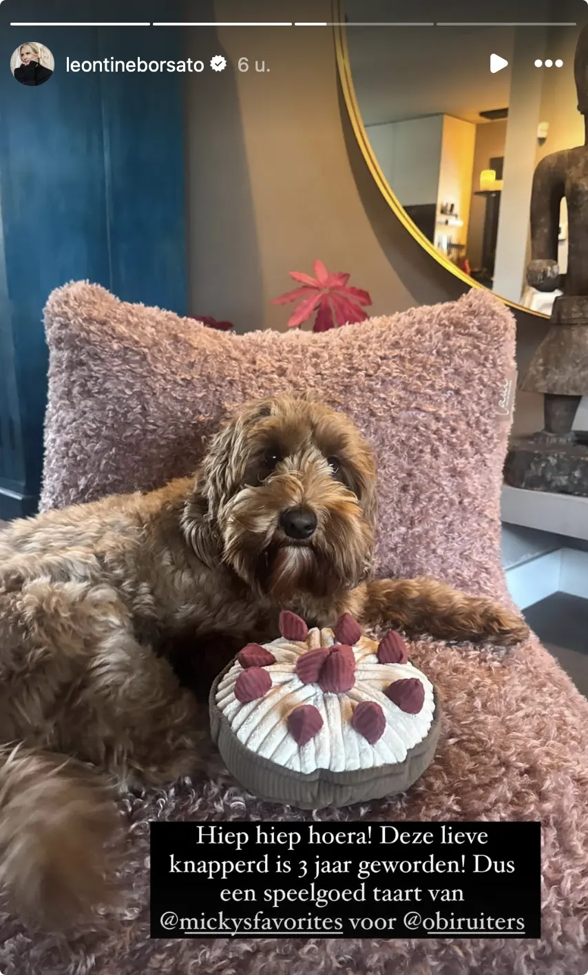 Feestelijke sferen in huize Ruiters, want één van Leontines grootste liefdes Obi is jarig. De schattige viervoeter is alweer 3 jaar geworden! Afgelopen maand zette Leontine haar ex-man Marco Borsato nog in het zonnetje, zie de video hierboven. Deze maand is haar hondje de gelukkige.