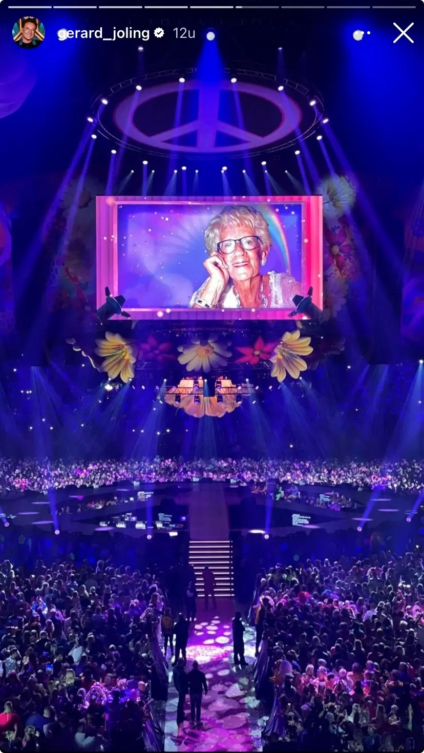 De unchained melody was te horen in het stadion. Toen vervolgens het nummer hurt gezongen werd, verscheen een grote foto van Jolings overleden moeder Janny op het scherm. Gerard deelde hiervan een foto in zijn Instagram Stories. Janny Joling overleed begin dit jaar op 92 jarige leeftijd.