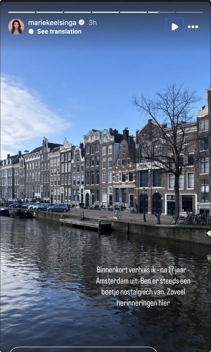 Op Instagram blikt emotioneel terug op haar tijd in de hoofdstad: "Binnenkort verhuis ik -na 17 jaar- Amsterdam uit. Ben er steeds een beetje nostalgisch van. Zoveel herinneringen hier."