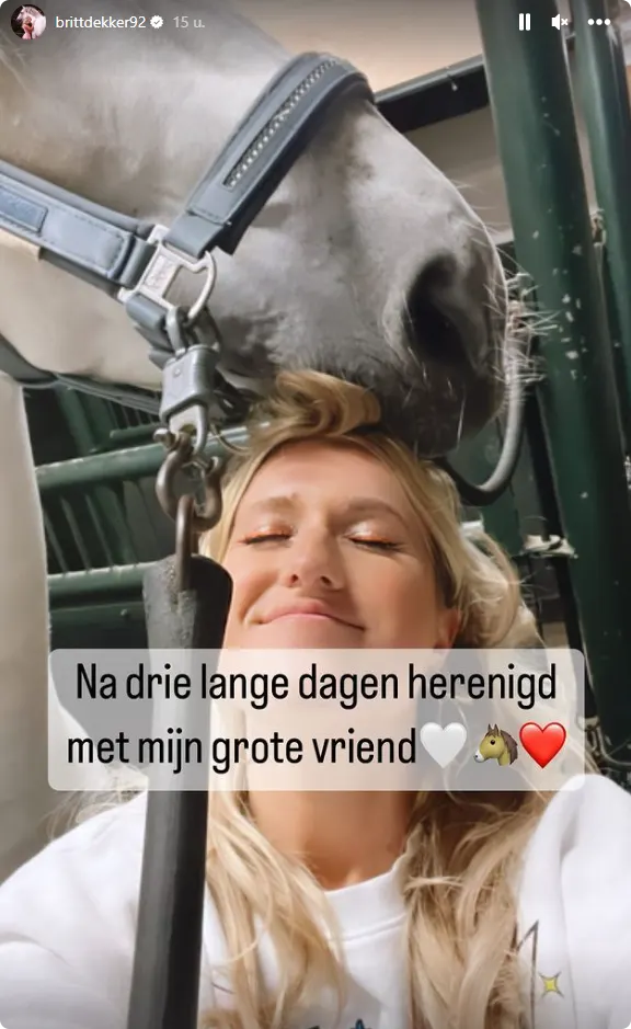 Britt Dekker heeft een prachtig moment gedeeld met haar fans. Ze is herenigd met haar paard...