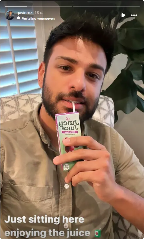Op zaterdag plaatst Gavin een opvallende foto in zijn Instagram-story. Hij deelt een foto van zichzelf, waarbij hij schrijft: "Ik zit hier gewoon te genieten van de juice." De kans is zeer groot dat hij hiermee doelt op Gordon, gezien zijn recente negatieve publiciteit.