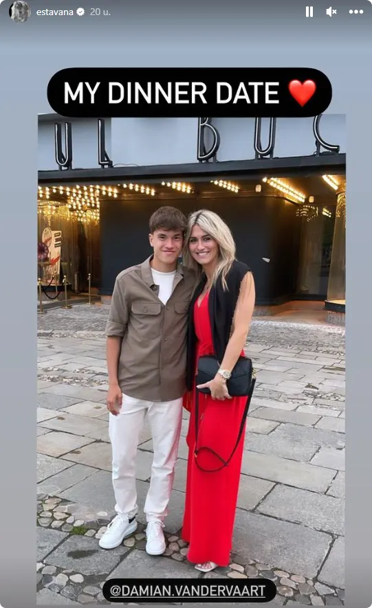 Op Instagram deelt Estavana een foto met haar 'bonuszoon' Damián, de zoon van Rafael van der Vaart. In haar Instagram Stories schrijft ze erbij dat het gaat om een 'dinner date'.