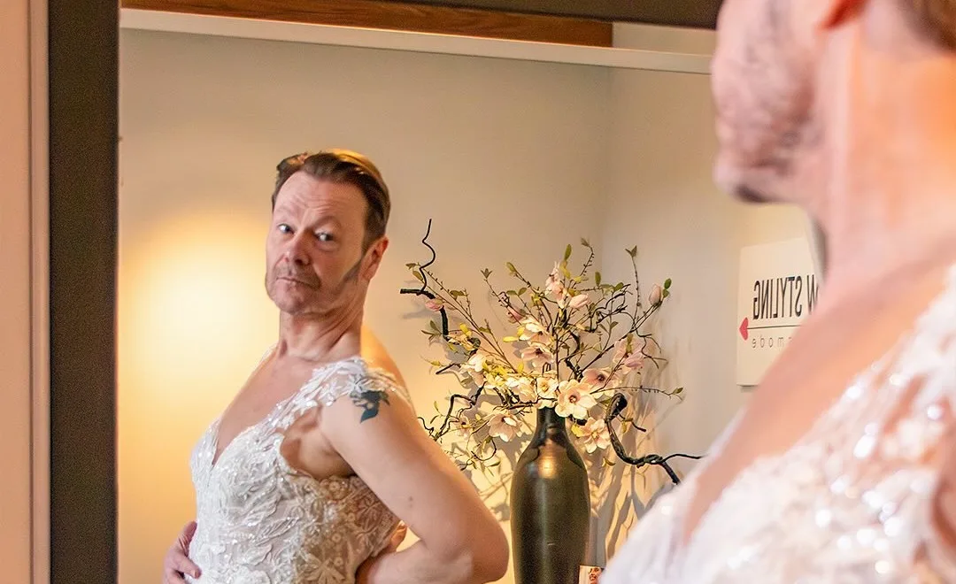 "Vorig jaar gaven ze mij een cadeau: trouwjurken passen. Ik heb er daadwerkelijk eentje aangehad." Dit is in de Instagram-post hierboven en de video bovenaan te zien. Gijs vervolgt: "Het was grappig bedoeld, omdat ik eerder had gezegd dat het bij vrouwen een trend was om voor de lol een paar uur trouwjurken te gaan passen. Dat leek hen ook wel leuk voor mij. Dus ik ben benieuwd waar ze nu mee komen."