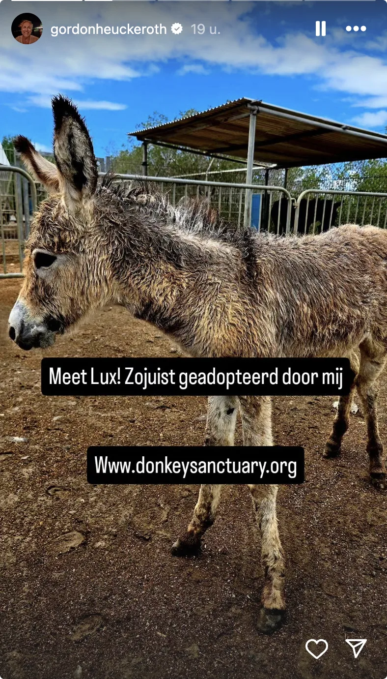 Gordon heeft een bijzondere actie verricht op het Caribische eiland Bonaire. De artiest en ondernemer, die momenteel met zijn eigen realityserie op tv is te zien, deelt op sociale media dat hij een ezel heeft geadopteerd (zie video).
