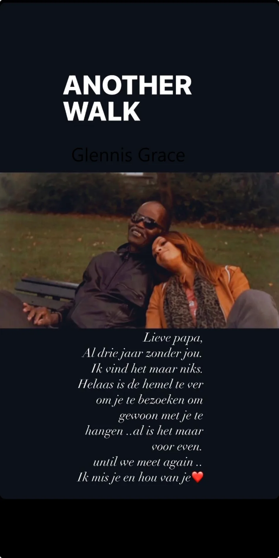 Het is zaterdag drie jaar geleden dat Glennis haar vader is overleden. Op haar Instagram-story plaatst ze een foto met haar vader. "Lieve papa, al drie jaar zonder jou", begint de zangers haar verhaal. "Ik vind het maar niks. Helaas is de hemel te ver om je te bezoeken om gewoon met je te hangen... al is het maar voor even. Until we meet again..." Ze sluit de tekst af met: "Ik mis je en hou van je".
