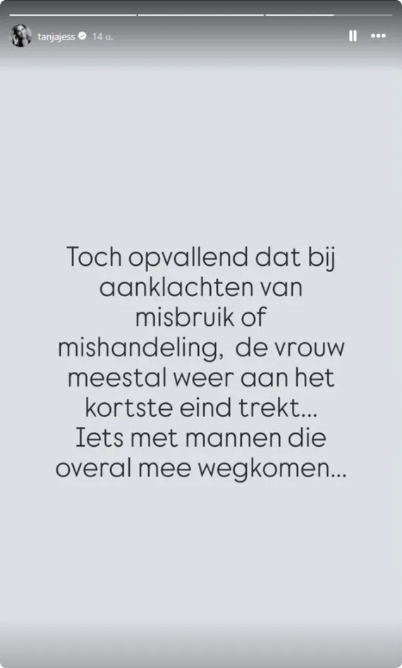 Sinds de verhalen over de vermeende mishandeling rondom Tygo, heeft Tanja nooit willen reageren. Maar zondag is daar dus verandering in gekomen. Zo schrijft ze in een opmerkelijk bericht op Instagram: "Toch opvallend dat bij aanklachten van misbruik of mishandeling, de vrouw meestal weer aan het kortste eind trekt… Iets met mannen die overal mee wegkomen…"