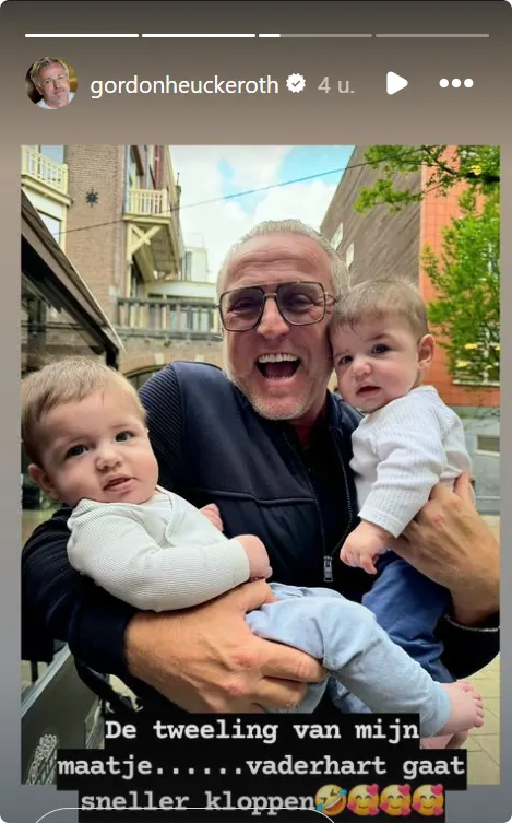 Vrijdag deelt Gordon een hartverwarmende foto op zijn Instagram, waarop hij te zien is met twee schattige kinderen in zijn armen. Bij de foto schrijft hij: "De tweeling van mijn maatje... Vaderhart gaat sneller kloppen."