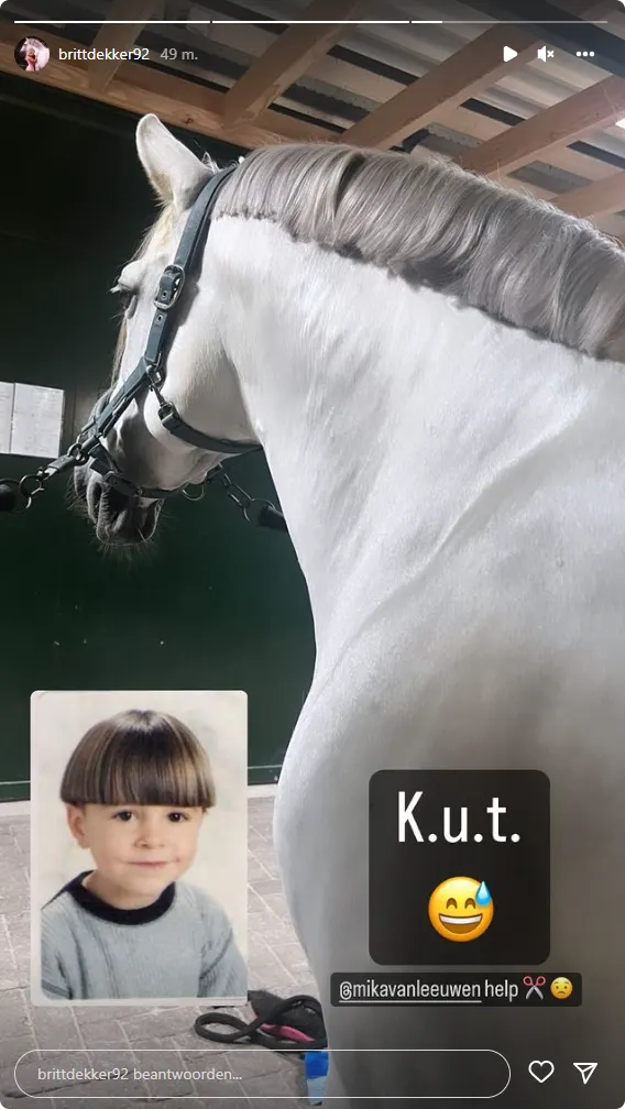 Het ziet ernaar uit dat Britt Dekker geen kapster moet worden... Terwijl haar paard George ondertussen een wereldster begint te worden, blijft Britt gewoon zijn kapper. Op Instagram deelt Britt een foto waarop te zien is dat ze de manen van haar paard geknipt heeft. Helaas heeft dit niet helemaal uitgepakt zoals verwacht.