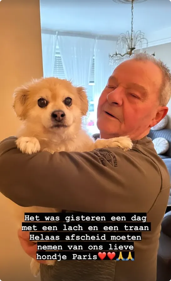 Bij de foto met zijn vader schrijft Roy: "Gisteren een dag met een lach en een traan. Na bijna 15 jaar bij ons te zijn geweest moesten wij gisteren plots afscheid van jou nemen. Lieve Paris rust zacht." Bekijk zijn bericht hieronder.