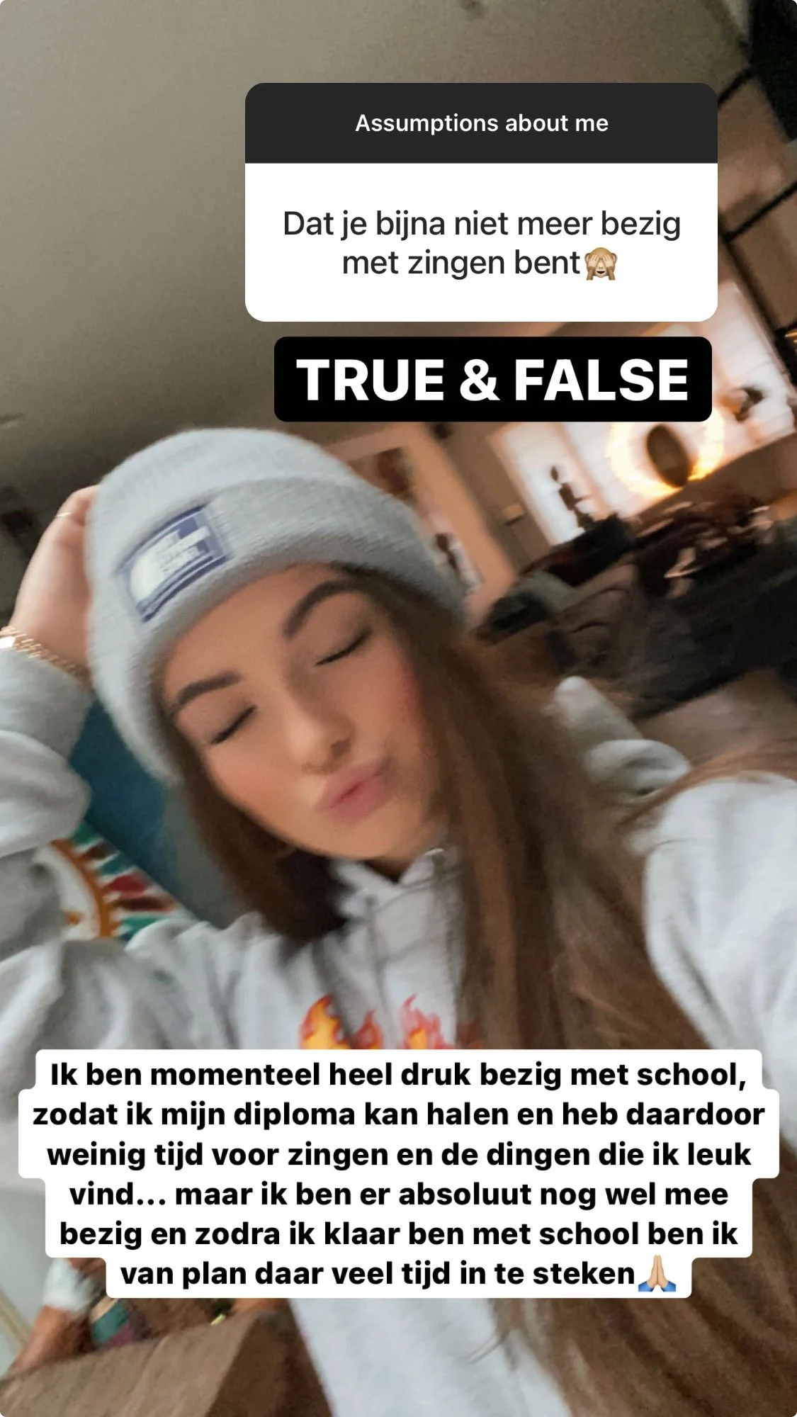 Overigens betekent het niet meedoen aan de bekende talentenjacht dat Jada niet meer graag of veel zingt. Aan een andere volger laat ze weten dat ze er niet veel tijd meer voor heeft, maar er wel nog aan wil werken. "Ik ben momenteel heel druk bezig met school, zodat ik mijn diploma kan halen en heb daardoor weinig tijd voor zingen en de dingen die ik leuk vind... Maar ik ben er absoluut nog wel mee bezig en zodra ik klaar ben met school ben ik van plan daar veel tijd in te steken."