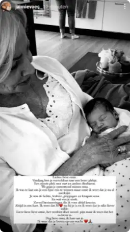 "We gaan je ontzettend missen, oma", schrijft de verdrietige Jaimie. "Ik was te laat om je een fijne reis te wensen, maar omie, ik weet dat je meekijkt. Je was de liefste, leukste, grappigste en knapste oma. En wat was je sterk. Zoveel herinneringen die ik voor altijd koester. Altijd in ons hart."