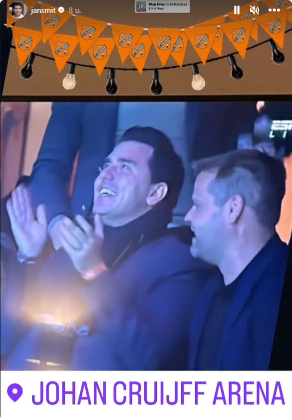 Jan Smit 'grapt' daarom op Instagram: "Puntverlies in Amsterdam..." Even later deelt hij ook nog een foto van zichzelf in het stadion met een intens gelukkige blik op zijn gezicht.