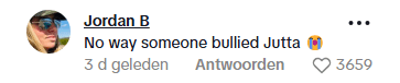 Op TikTok deelt Jutta een filmpje op het nummer van Sabrina Carpenter, Busy Woman. ''Wanneer de pesters van de middelbare school weer proberen terug te komen in je leven'', schrijft ze bij de video. De tekst van het nummer sluit perfect aan bij Jutta's boodschap. Zo zingt Sabrina onder andere dat ze sommige mensen niet toelaat in haar leven.