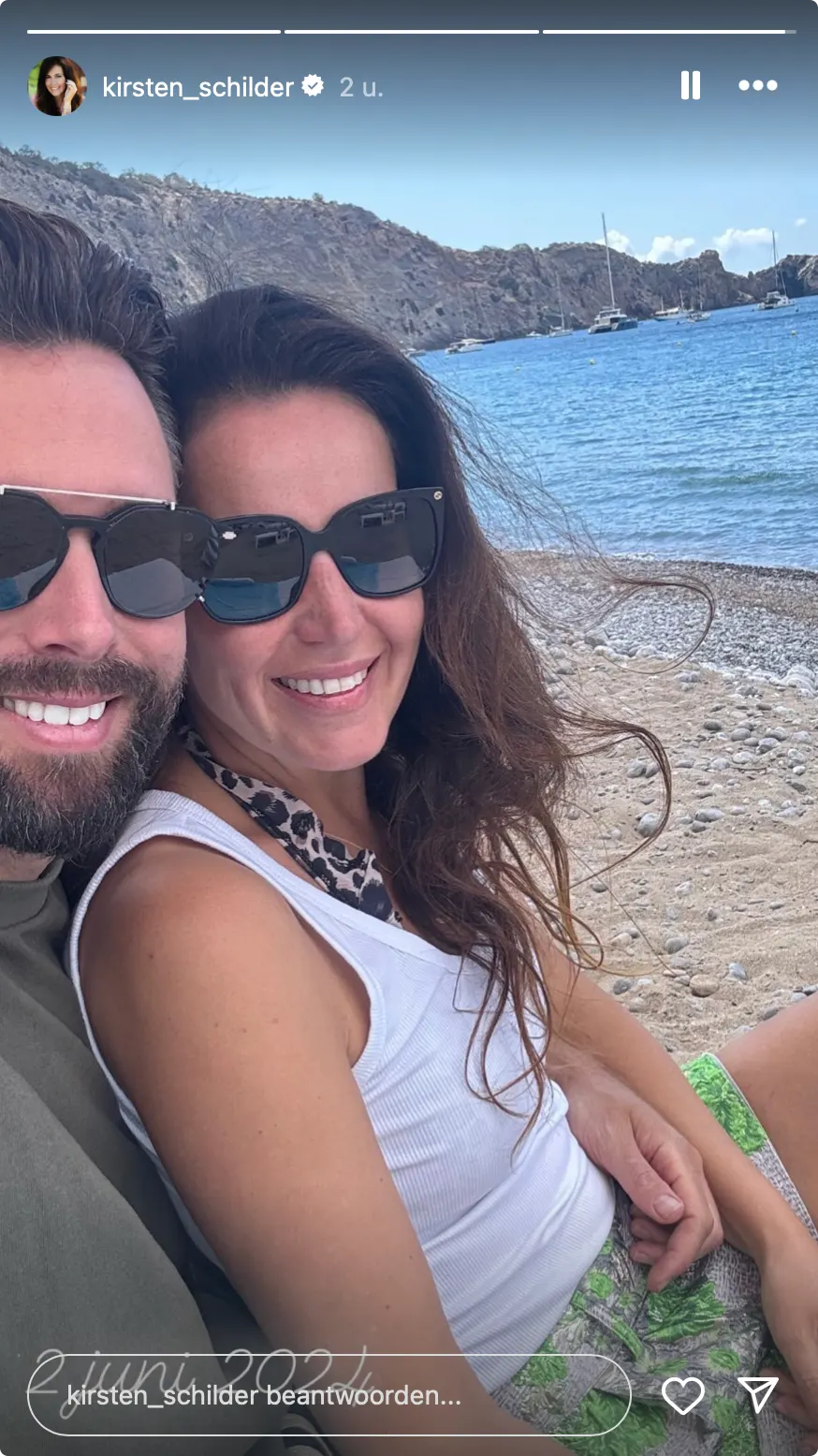 In haar Instagram Stories wordt duidelijk op welke plek: het stel is op een warme bestemming, waar ze van elkaars gezelschap genieten aan het strand. Zie het in de foto hieronder.