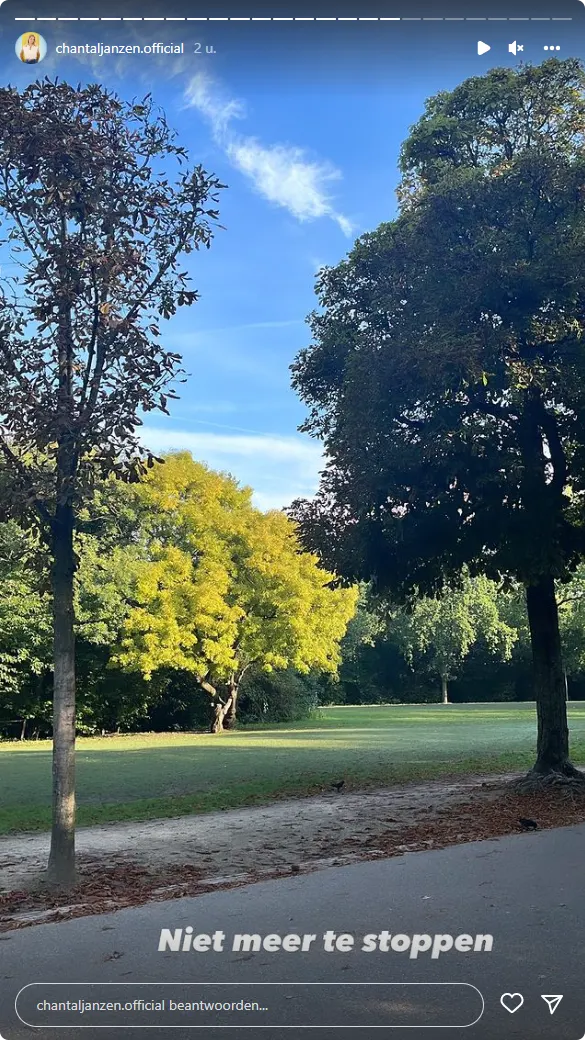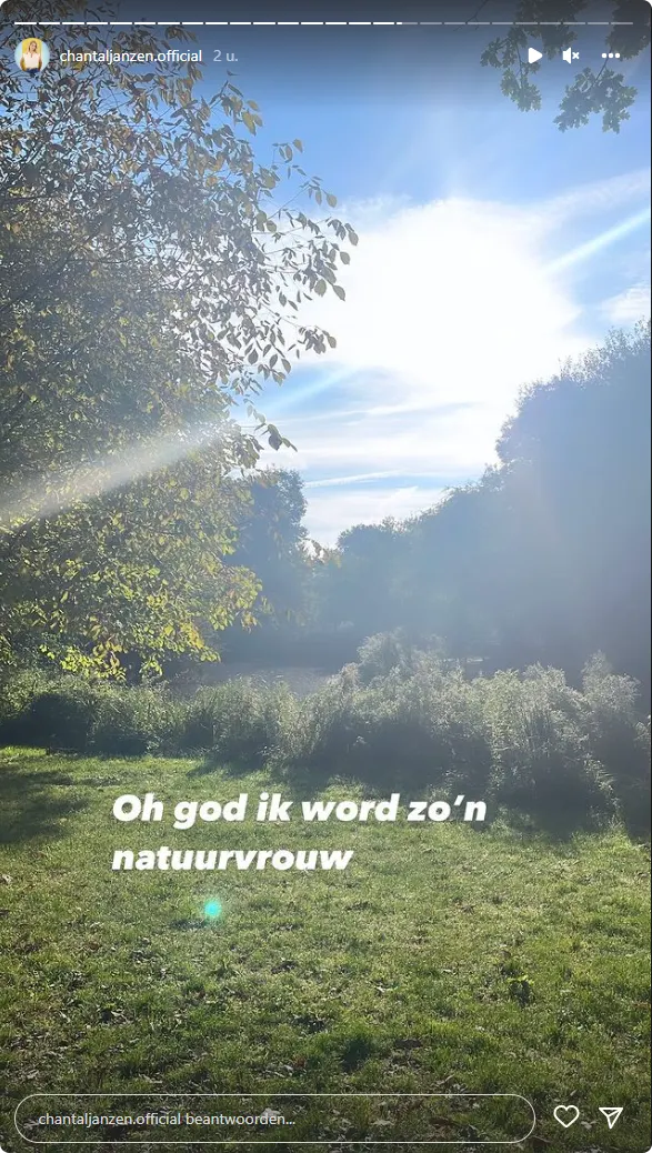 In haar Instagram Stories plaatst ze diverse foto's van de omgeving waar ze op dat moment loopt. "oh god ik word zo'n natuurvrouw", schrijft Chantal bij één van de foto's. Vervolgens deelt ze ook nog een video met de tekst: "Fuck it. Dit is toch gewoon heel mooi?" Zie bovenstaande video.