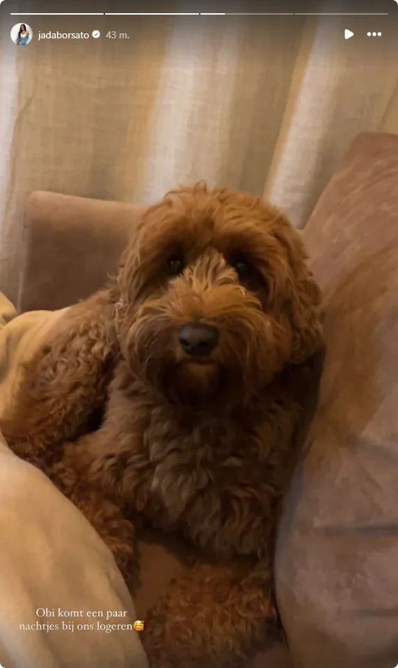 Zijn dochter Jada brengt een bezoek aan haar vader, maar ze komt niet alleen. Ze heeft namelijk de hond van haar moeder Leontine, Obi, meegenomen. Op Instagram Stories laat Jada weten dat ze tijdelijk op de viervoeter past. Bij een foto van Obi schrijft ze: "Obi komt een paar nachtjes bij ons logeren."