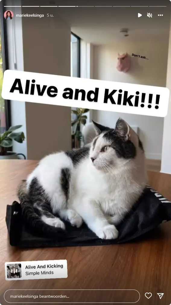 Al snel volgt er nog een foto op Instagram waarop te zien is dat Kiki gelukkig helemaal 'alive' is.