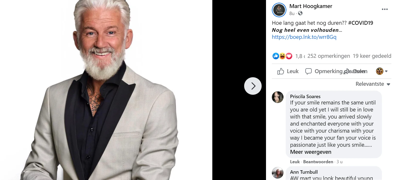 "Hoe lang gaat het nog duren??" schrijft Mart op Facebook, met in de hashtag COVID19. "Nog heel even volhouden."