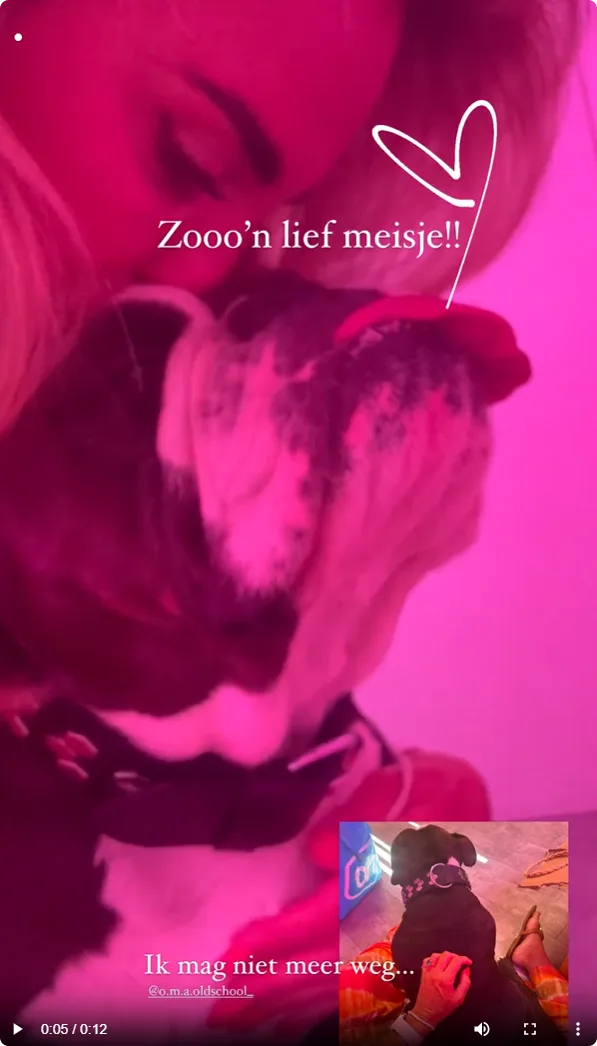 In haar Instagram Stories laat Monique eerst zien hoe ze met een hond kroelt, waarbij ze schrijft: "Zo'n lief meisje. Ik mag niet meer weg."