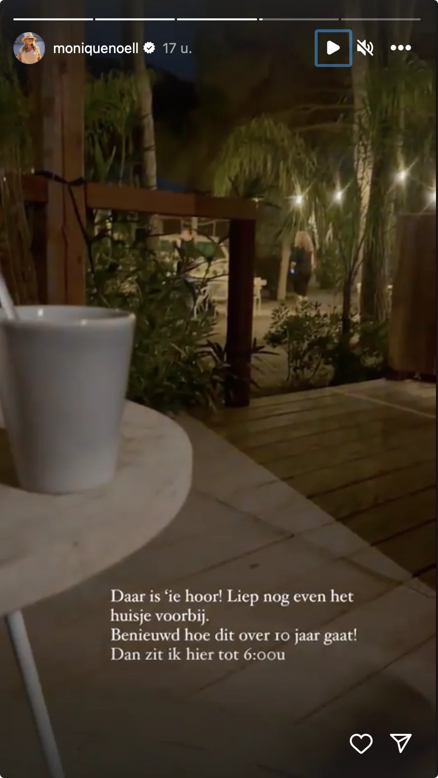 Een tijdje later plaatst Monique nog een bericht in haar Instagram Stories. "Daar is ‘ie hoor! Liep nog even het huisje voorbij." De iets wat bezorgde moeder vraagt zich af hoe dit over tien jaar gaat. "Dan zit ik hier tot 6:00 uur", grapt ze vervolgens.