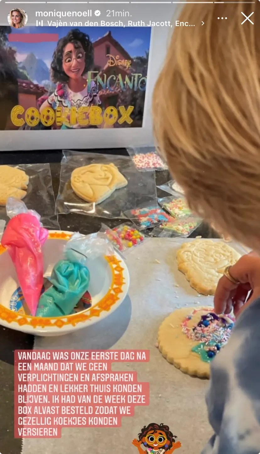 ''Vandaag was onze eerste dag na een maand dat we geen afspraken en verplichtingen hadden en lekker thuis konden blijven'', aldus Westenberg in haar Instagram Stories. ''Ik had van de week deze box alvast besteld zodat we gezellig koekjes konden versieren.''