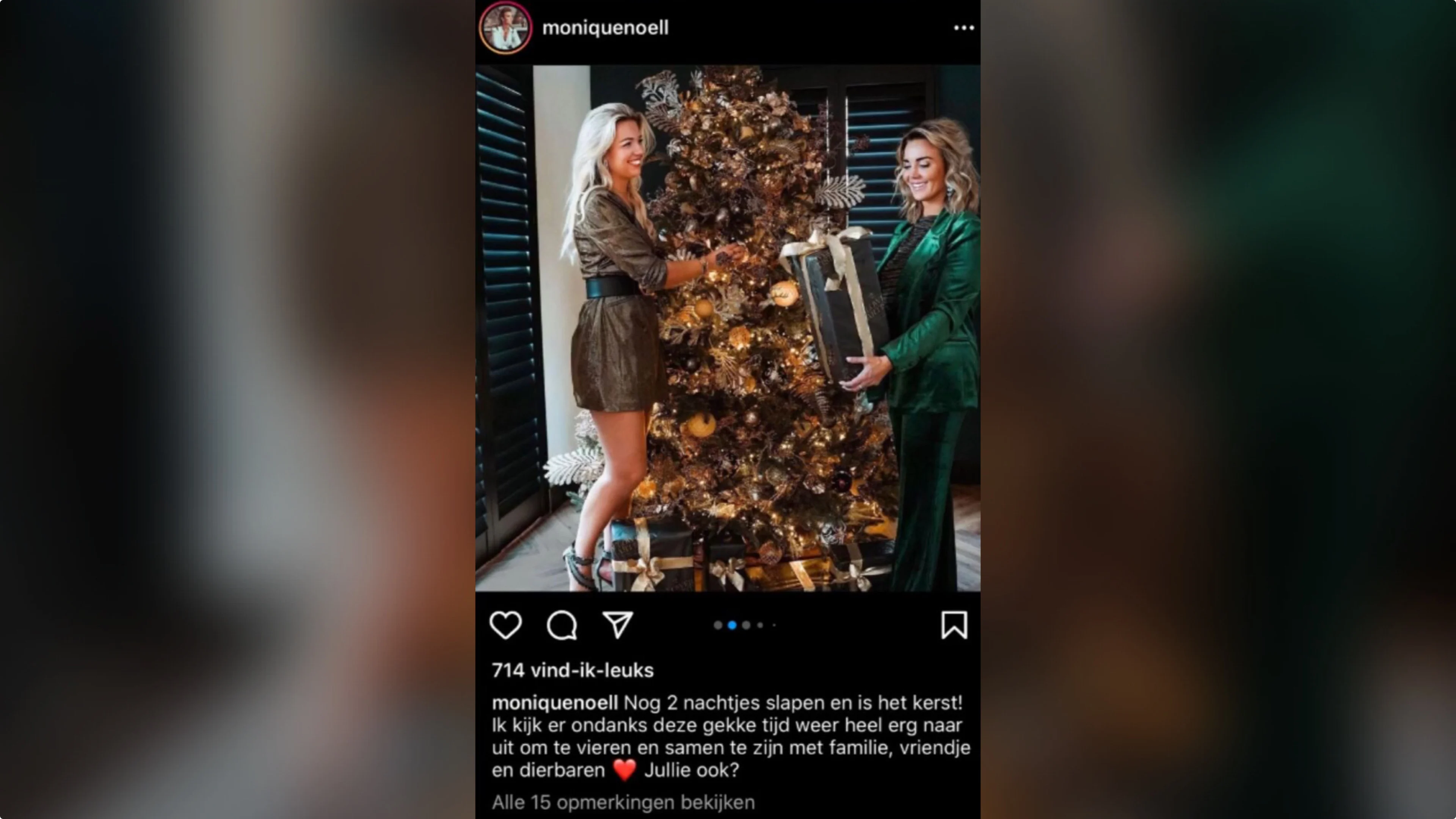 Monique plaatst donderdagmiddag een gezellige foto van haar versierde huis op Instagram. Daarbij schrijft ze: "Nog 2 nachtjes slapen en is het kerst! Ik kijk er ondanks deze gekke tijd weer heel erg naar uit om te vieren en samen te zijn met familie, vriendje en dierbaren."