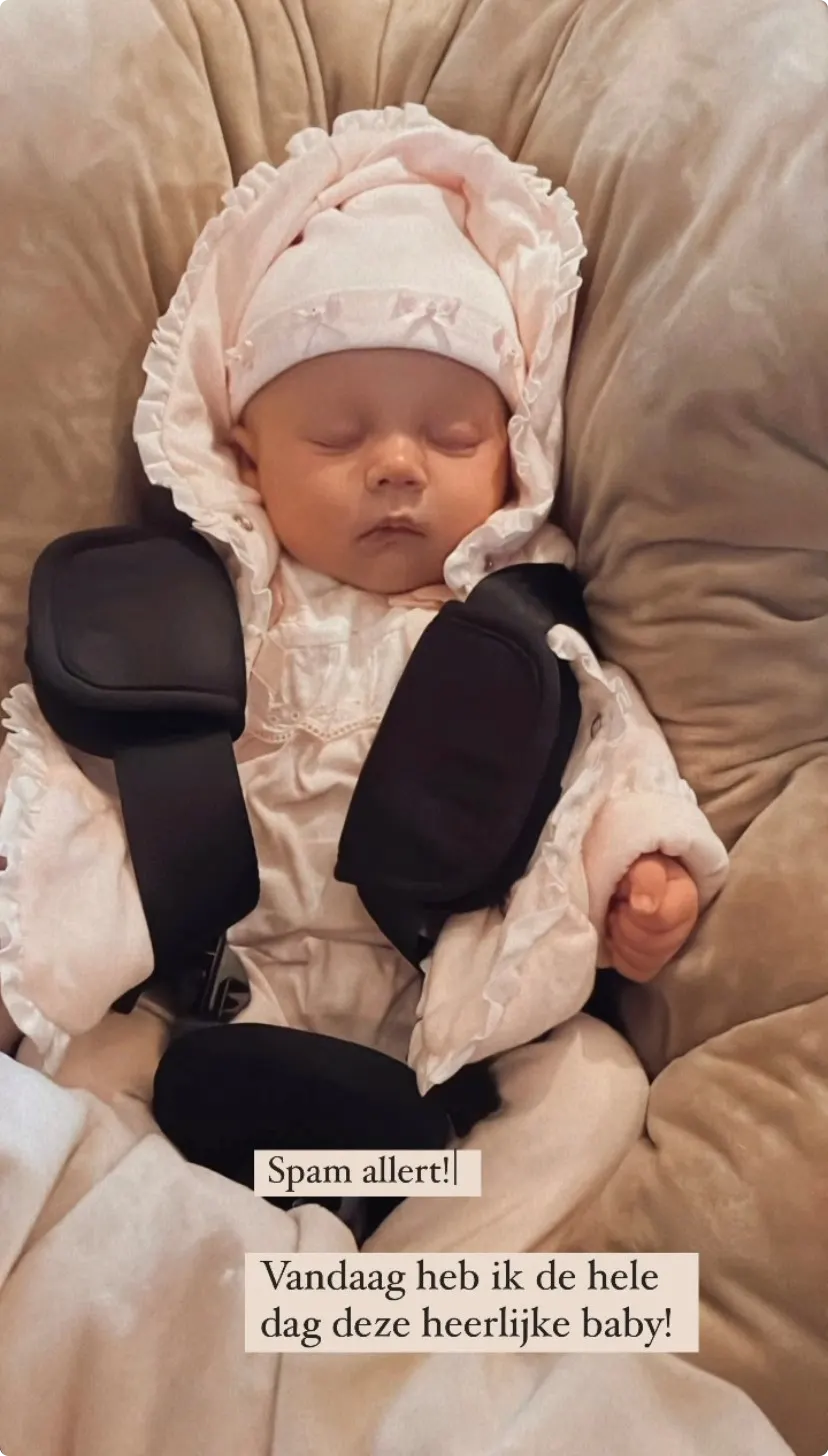 Een bijzondere dag vrijdag voor Monique Westenberg. Op sociale media laat ze weten de hele dag op een baby te passen...
