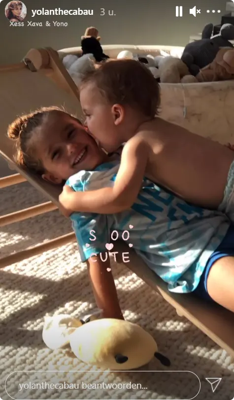 Yono, het zoontje van Yolanthes zus Xelly die vernoemd is naar Yolanthe, kan erg goed opschieten met zijn grote neef. De actrice deelt een foto, waarop te zien is dat Yono bijna een grote hap uit Xess Xava neemt. "Zo cute", schrijft ze erbij.