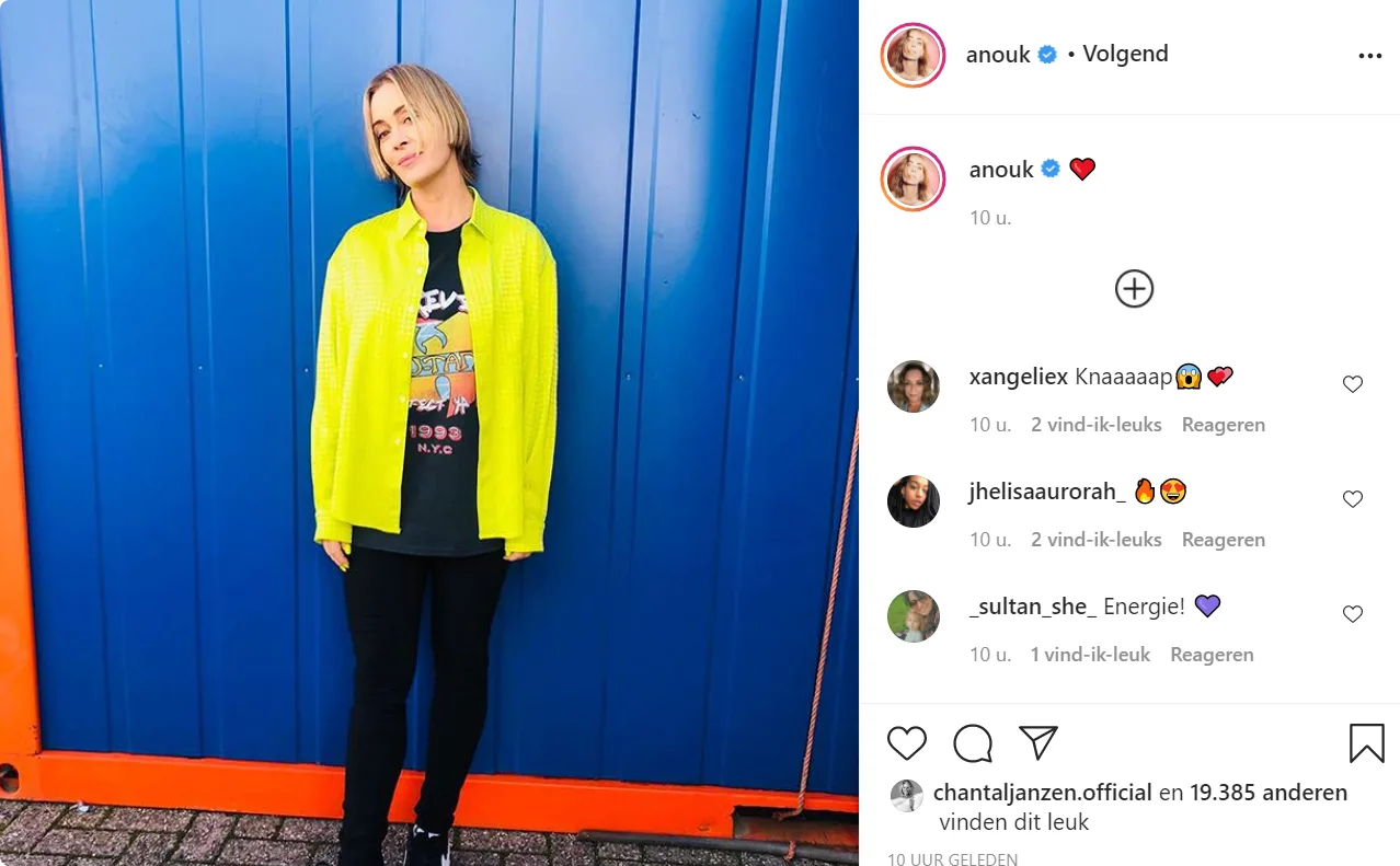 Anouk heeft bijna al haar haar afgeschoren. Dit laat ze zien op haar social media.