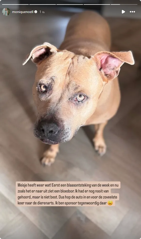 Het gaat om haar geliefde hond, die de laatste tijd verschillende gezondheidsproblemen heeft. Op Instagram deelt Monique een foto waarop haar trouwe viervoeter met een zielige blik te zien is, en schrijft ze openhartig over de zorgen die ze momenteel heeft.
