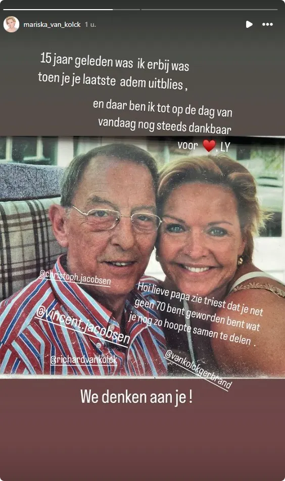 Maandag is een emotionele dag voor Mariska van Kolck. Op Instagram deelt ze dat ze haar vader al 15 jaar moet missen...