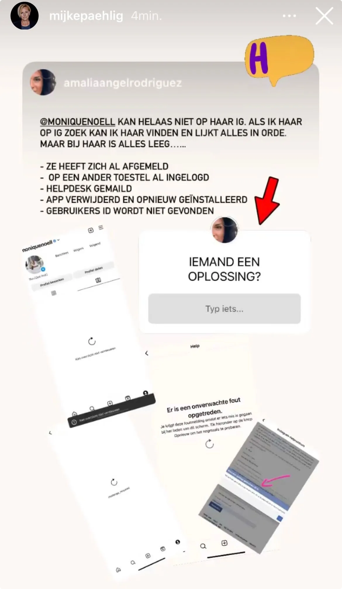 "Monique Westenberg kan helaas niet op haar Instagram. Als ik haar op Instagram zoek kan ik haar vinden en lijkt alles in orde. Maar bij haar is alles leeg", plaatste haar management op Instagram. Ze vroegen hun volgers vervolgens om hulp.