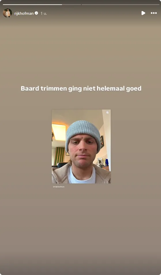 "Met of zonder baard? Te laat", schrijft Rijk Hofman onder zijn Instagram-bericht (swipe bij het bericht hieronder voor het eindresultaat). Ondanks dat hij zichzelf in 2022 nog waarschuwde (zie video), heeft hij nu toch echt zijn baard eraf geschoren.