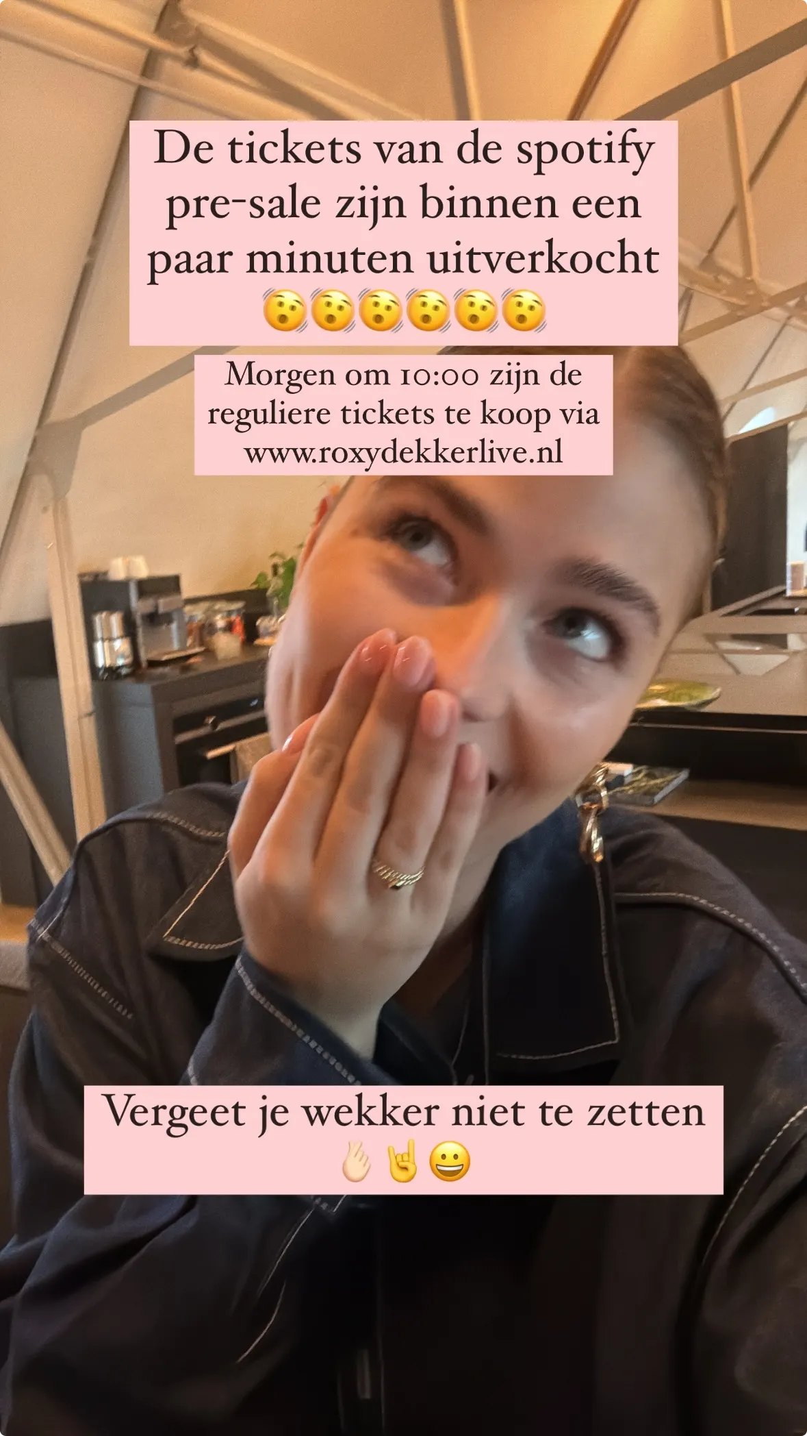 Via een persoonlijke mail van Spotify konden de fanatieke luisteraars van Roxy sowieso een kans krijgen om een bezoekje te brengen aan haar show. "Wees snel! Er is een beperkt aantal kaartjes beschikbaar", waarschuwde de zangeres al vooraf. En terecht, want de kaartverkoop ging als een malle. Volgens Roxy waren de kaarten binnen een paar minuten uitverkocht.