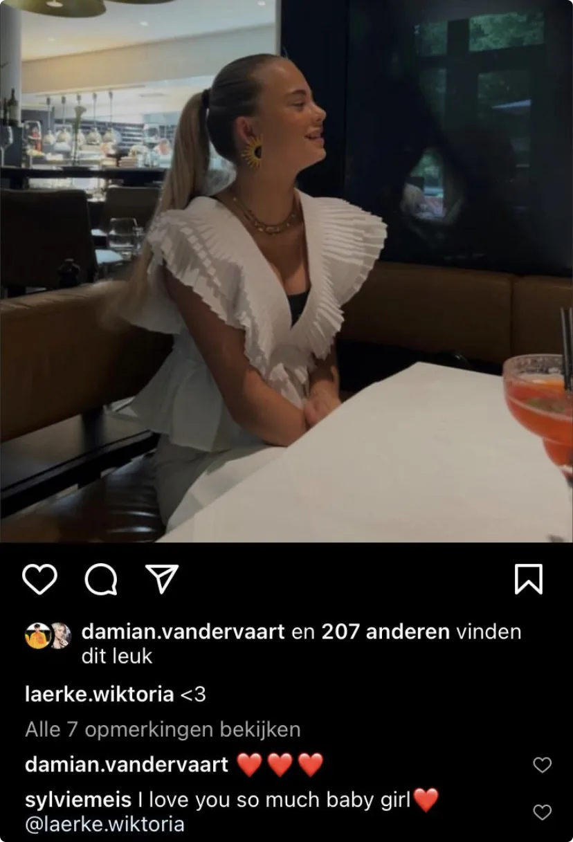 Damián is al een jaar gelukkig in de liefde met zijn vriendin Laerke. Ook Sylvie lijkt erg blij te zijn met haar schoondochter, zo laat ze zelf weten onder een bericht op sociale media. Laerke heeft een foto van haarzelf op Instagram gedeeld, Sylvie reageert daaronder met: "Ik houd zoveel van jou kleine meid!"