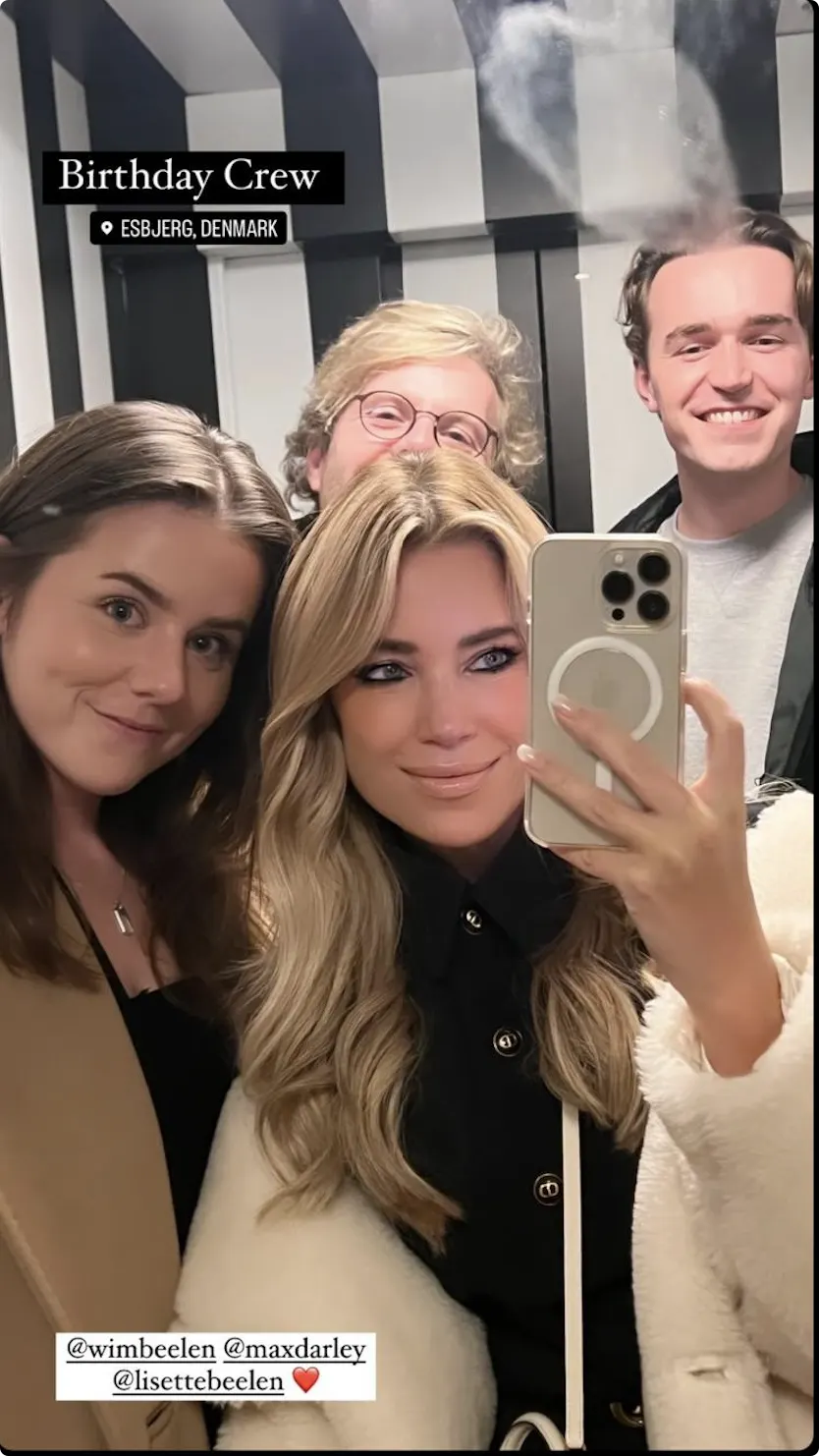 "Birthday Crew", aldus Sylvie in haar Instagram Stories. Ze is samen met Wim en een familielid van hem afgereisd naar het Scandinavische land, speciaal voor de verjaardag van de vriendin van haar zoon Dámian.